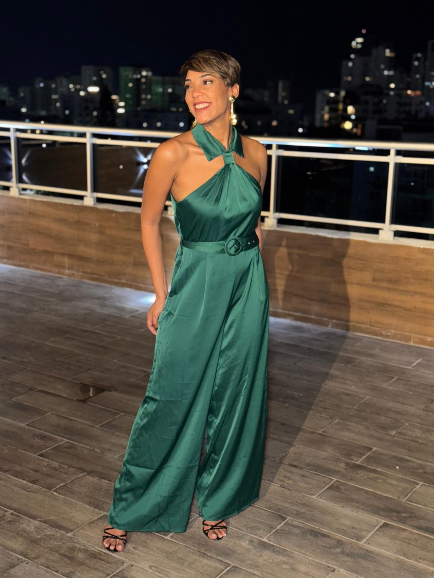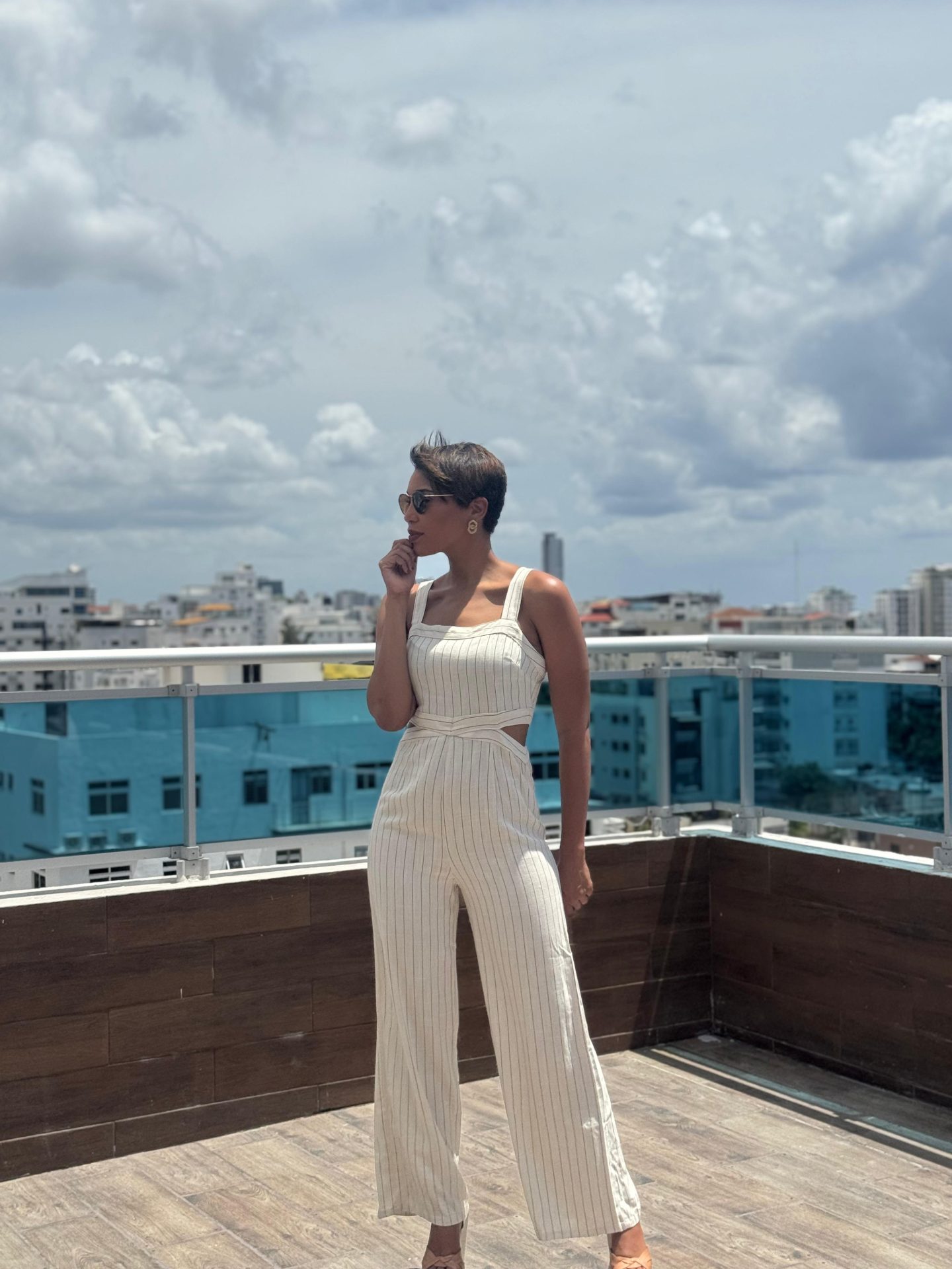 Conjunto cargo multicolor de dos piezas con botones, tela elástica, la modelo mide 5’7 y...