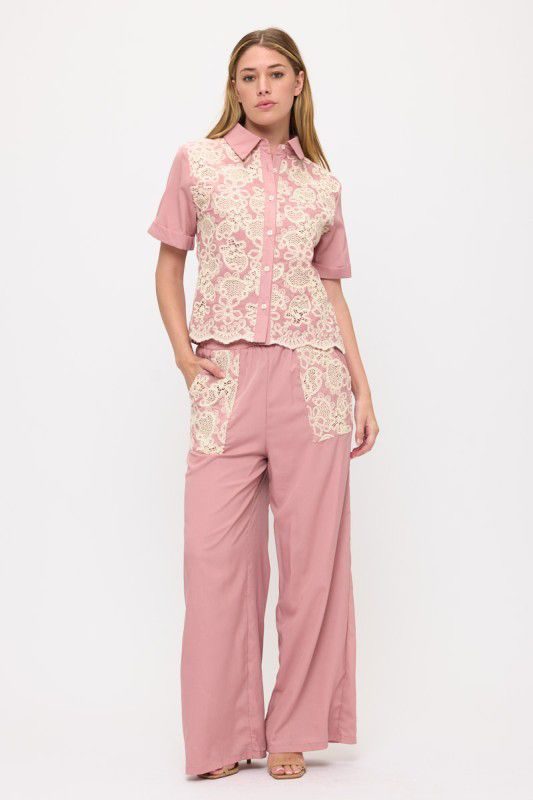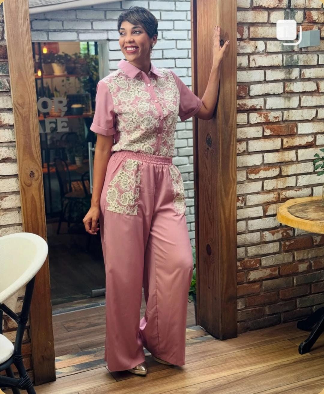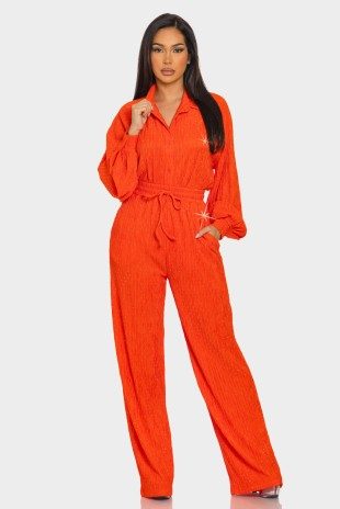 conjunto de camisa y pantalon de botones y diamantes de imitacion arrugados naranja