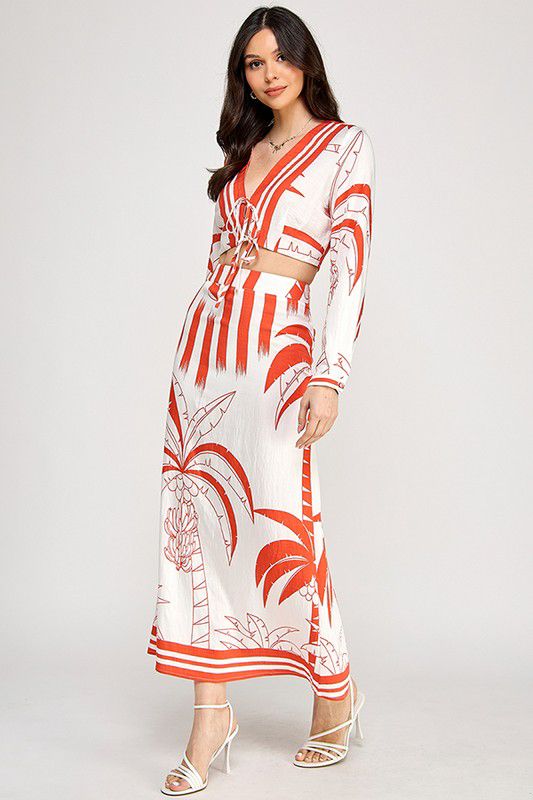 Conjunto de top de manga larga retorcido y falda con estampado de borde.BLANCORD$3,279.00Seleccionar opciones Este producto tiene múltiples variantes. Las opciones se pueden elegir en la página de producto