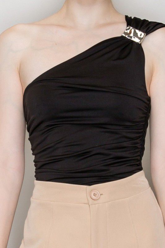 Body asimétrico de un solo hombro con placa metálica. NEGRORD$1,779.00Seleccionar opciones Este producto tiene múltiples variantes. Las opciones se pueden elegir en la página de producto