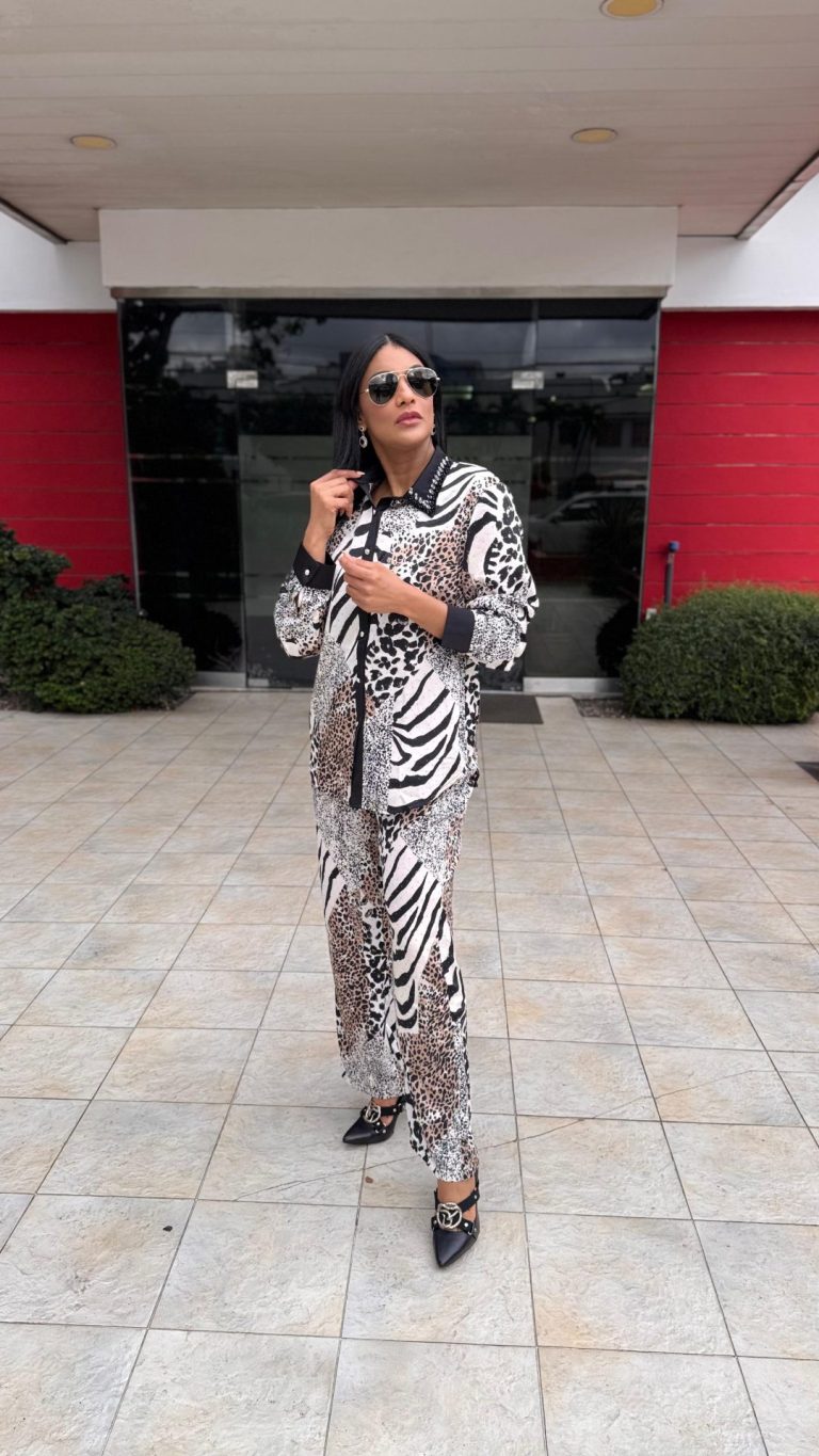 Conjuntos de camisa y pantalón con estampado animal en contraste Mangas largas con puños abotonados Frente abotonado Cuello en punta con adorno de pedrería A juego con pantalón largo con estampado animal Pierna recta Cintura elásticaRD$3,979.00Seleccionar opciones Este producto tiene múltiples variantes. Las opciones se pueden elegir en la página de producto
