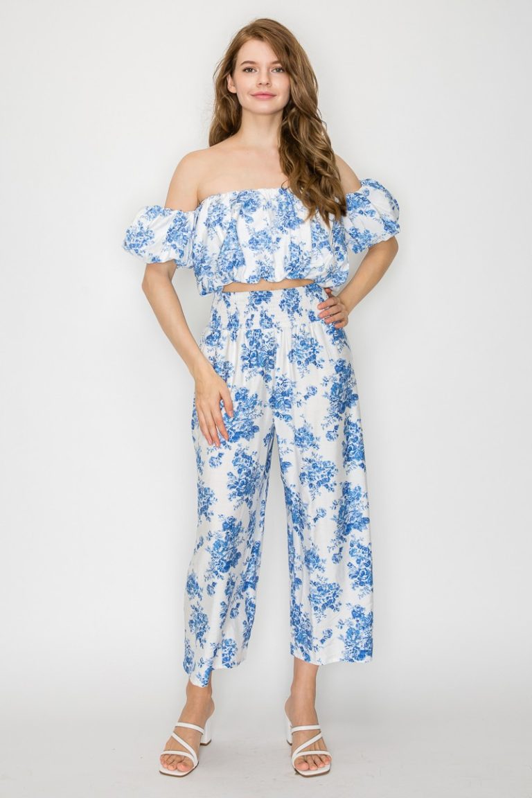 Pantalones y top corto tropicales de pierna ancha con elástico fruncido blanco con flores azules IRISRD$2,679.00Seleccionar opciones Este producto tiene múltiples variantes. Las opciones se pueden elegir en la página de producto
