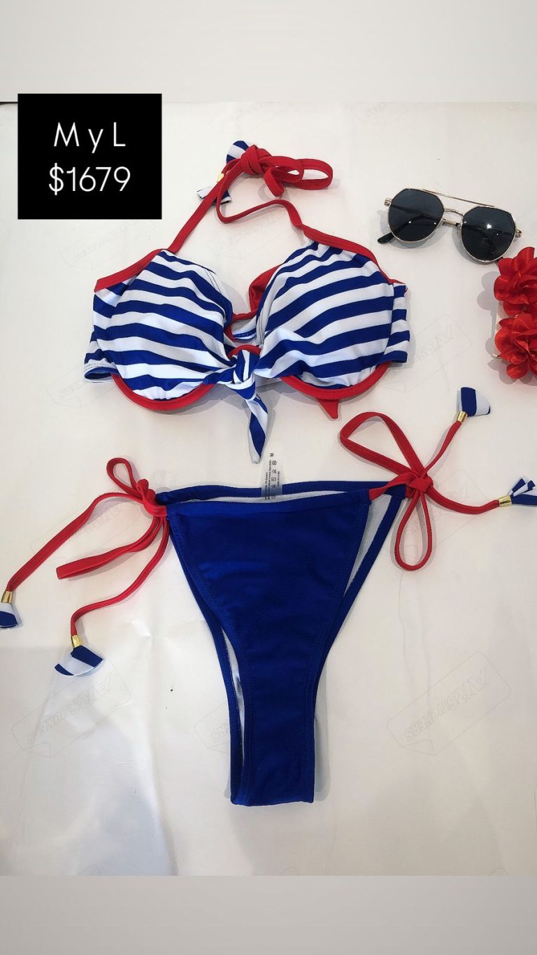 Conjunto de traje de baño de verano con estampado de rayas de contraste, atado al cuello, para vacaciones en la playaRD$1,679.00Seleccionar opciones Este producto tiene múltiples variantes. Las opciones se pueden elegir en la página de producto