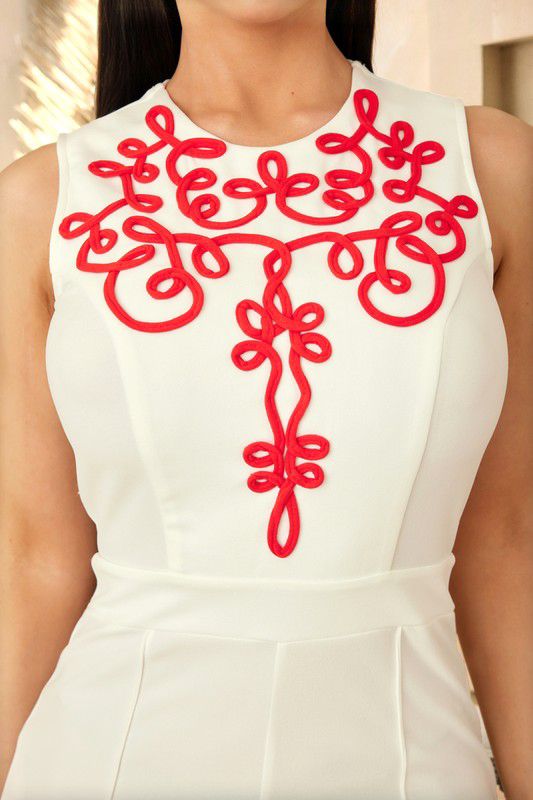 Un mono con estampado de remolinos y garabatos en blanco y naranja es una pieza de máximo impacto visual que combina la energía del color con un diseño artístico y dinámico.